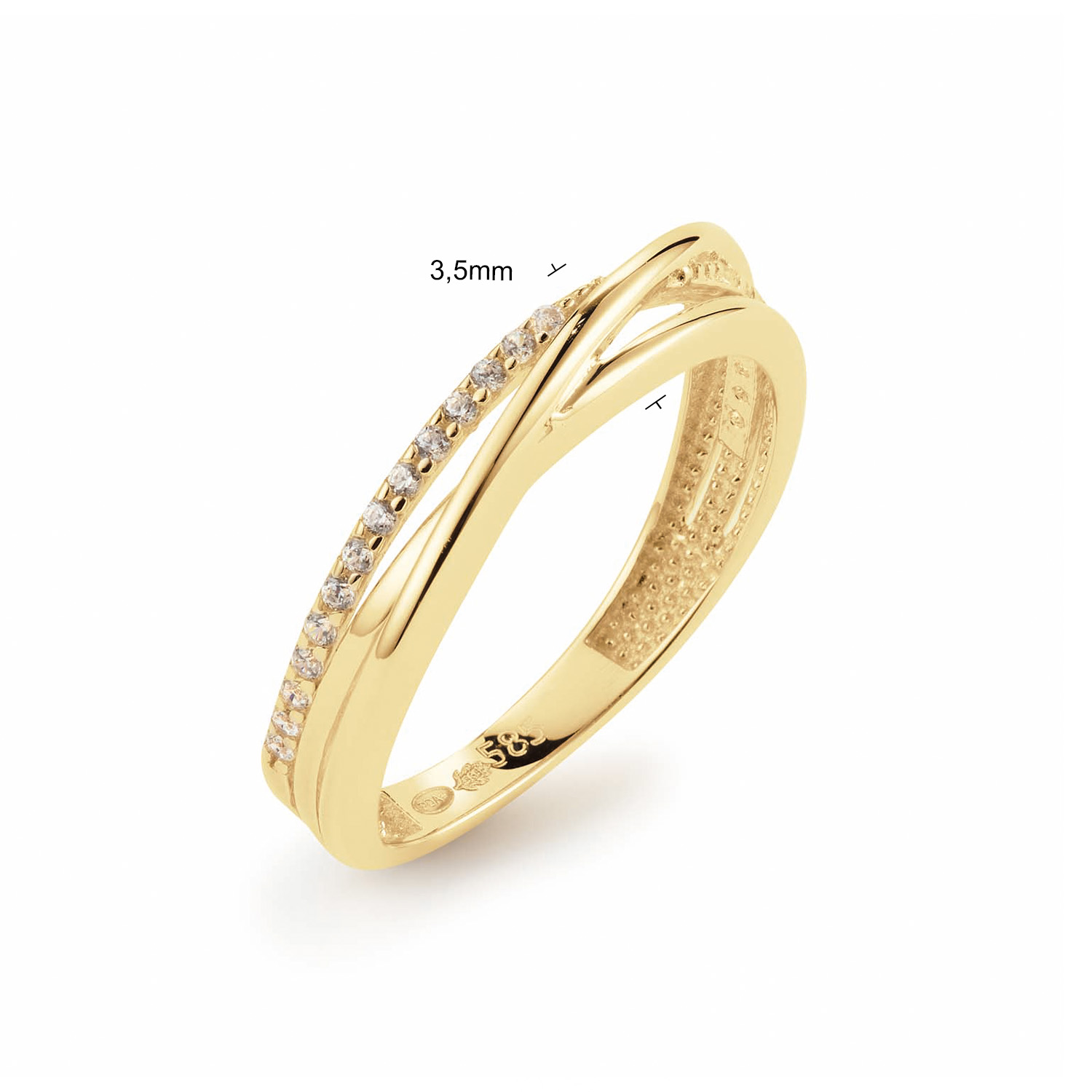 Mooie elegante ring met 3 banen zirkonia