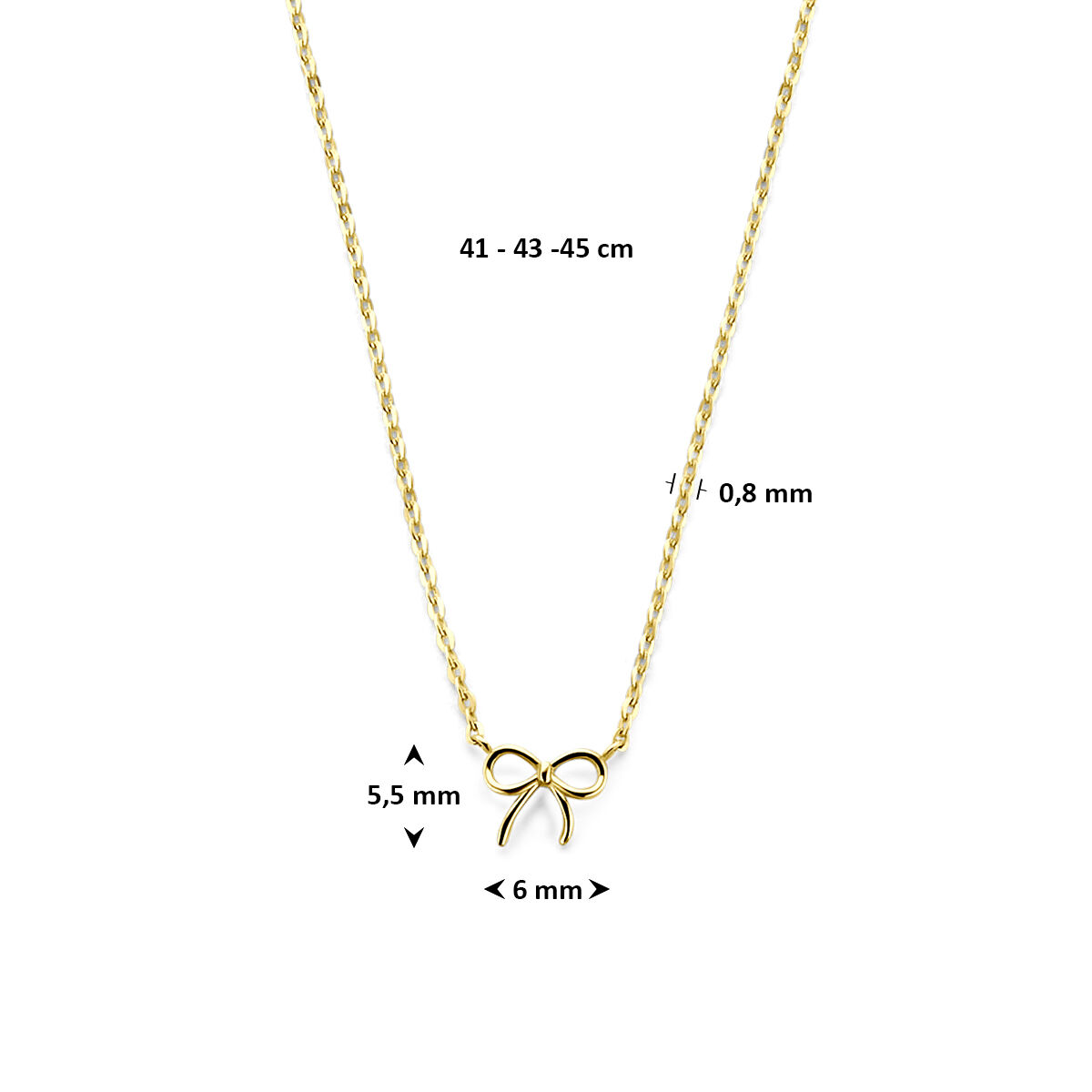 9k Geel kleurig collier uitgevoerd met een strik. Het collier heeft draaglengtes van 41-43-45cm.