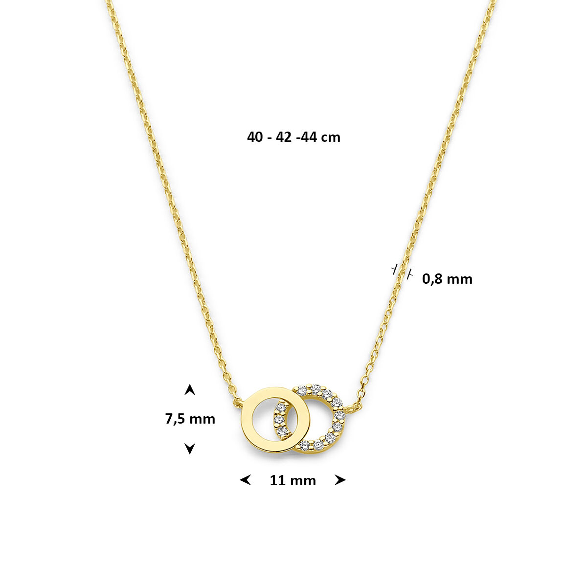 9k Geel kleurig collier met zirkonia. Het collier heeft draaglengtes van 40-42-44cm.