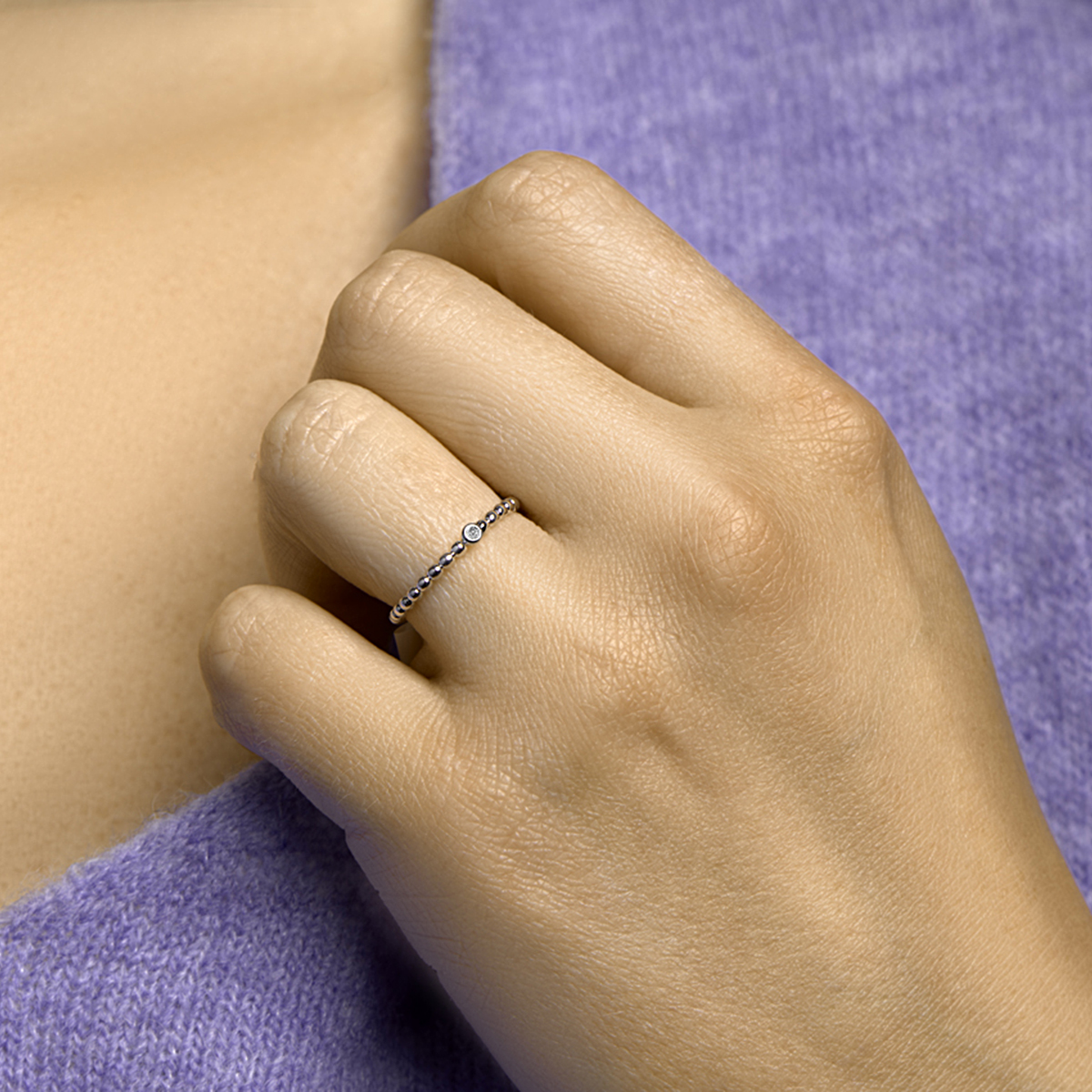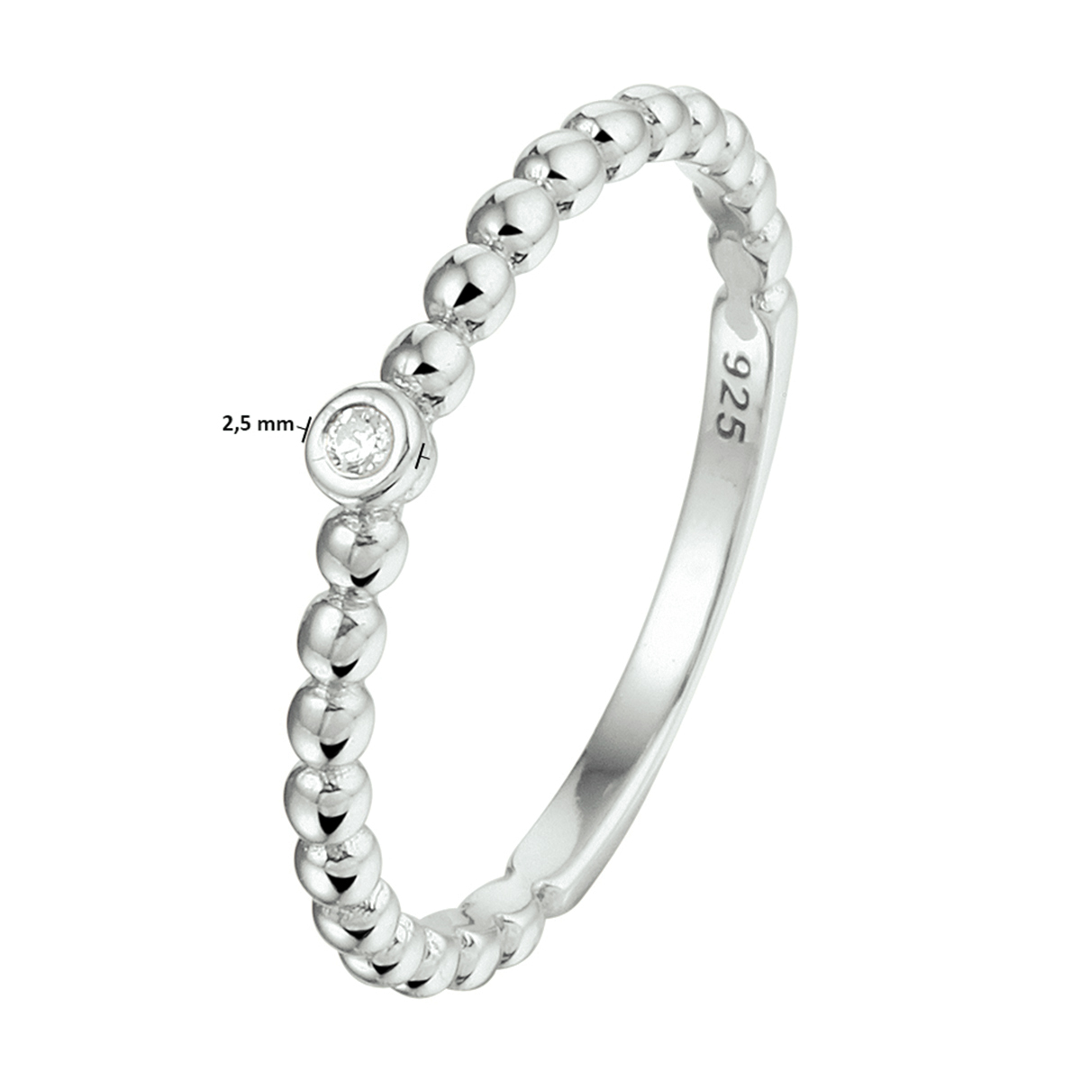 Gerhodineerd 925 zilveren aanschuifring uitgevoerd met bolletjes en een schitterende zirkonia. De ring heeft een breedte van 2.5mm.