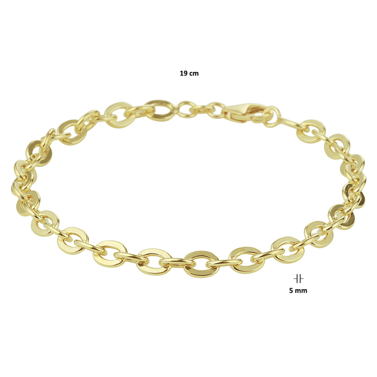 De armband is gemaakt van goud met zilveren kern en is goudkleurig.