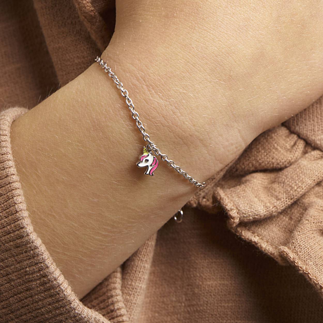Deze prachtige armband is versierd met een schitterende eenhoorn en sprankelende edelstenen. De armband is verstelbaar en past om elke pols. Draag hem als statement piece of combineer met andere armbanden voor een speelse look. Het perfecte accessoire voor elke eenhoornliefhebber! Voeg wat magie toe aan je outfit met deze armband. Koop hem nu en laat je betoveren!