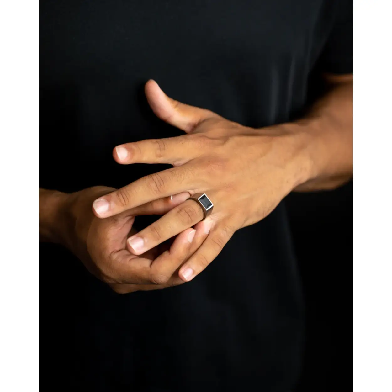 Accessoires maken de man. Toon je ware aard met deze Gemini ring Credo Silver Black CRE01. De heren ring is vervaadigd uit titanium en afgewerkt met een natuursteen. De Agate steen is afkomstig uit USA. Deze kwarts ontslast je van stress.