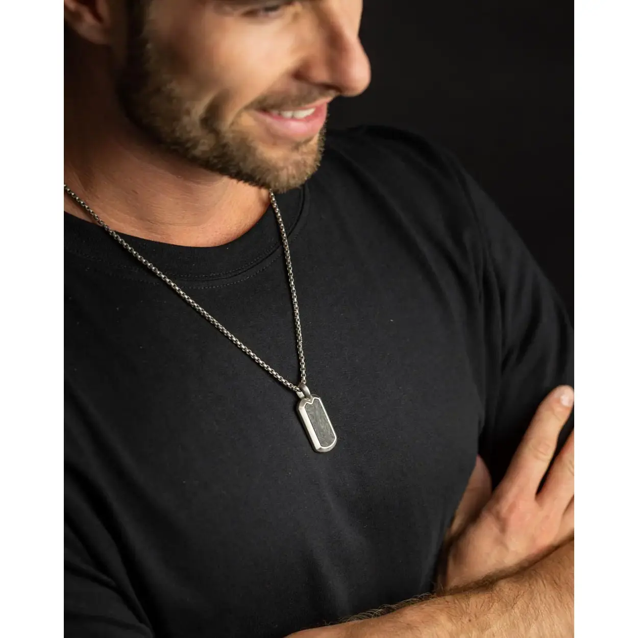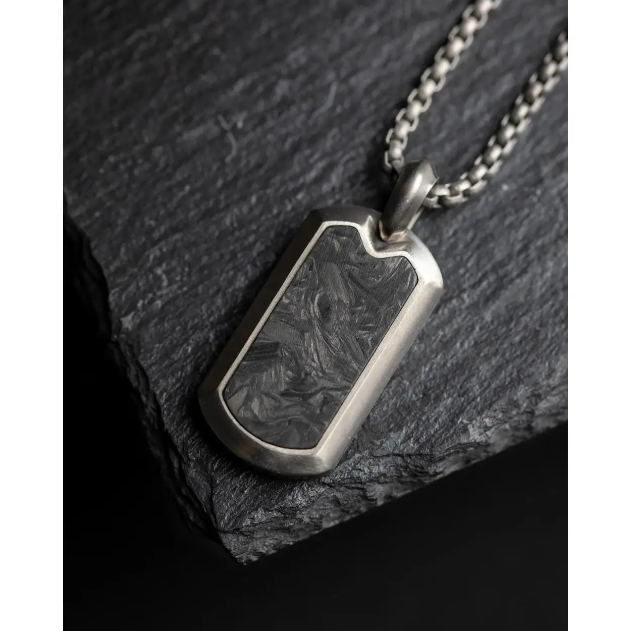 Deze ketting is gemaakt van Japanse titanium en klaar met vervalste koolstof. Zowel titanium als koolstof zijn veren licht, ultra sterk en hypo-allergenisch. Deze materialen worden vaak gebruikt in aerospace of in luxe auto's.