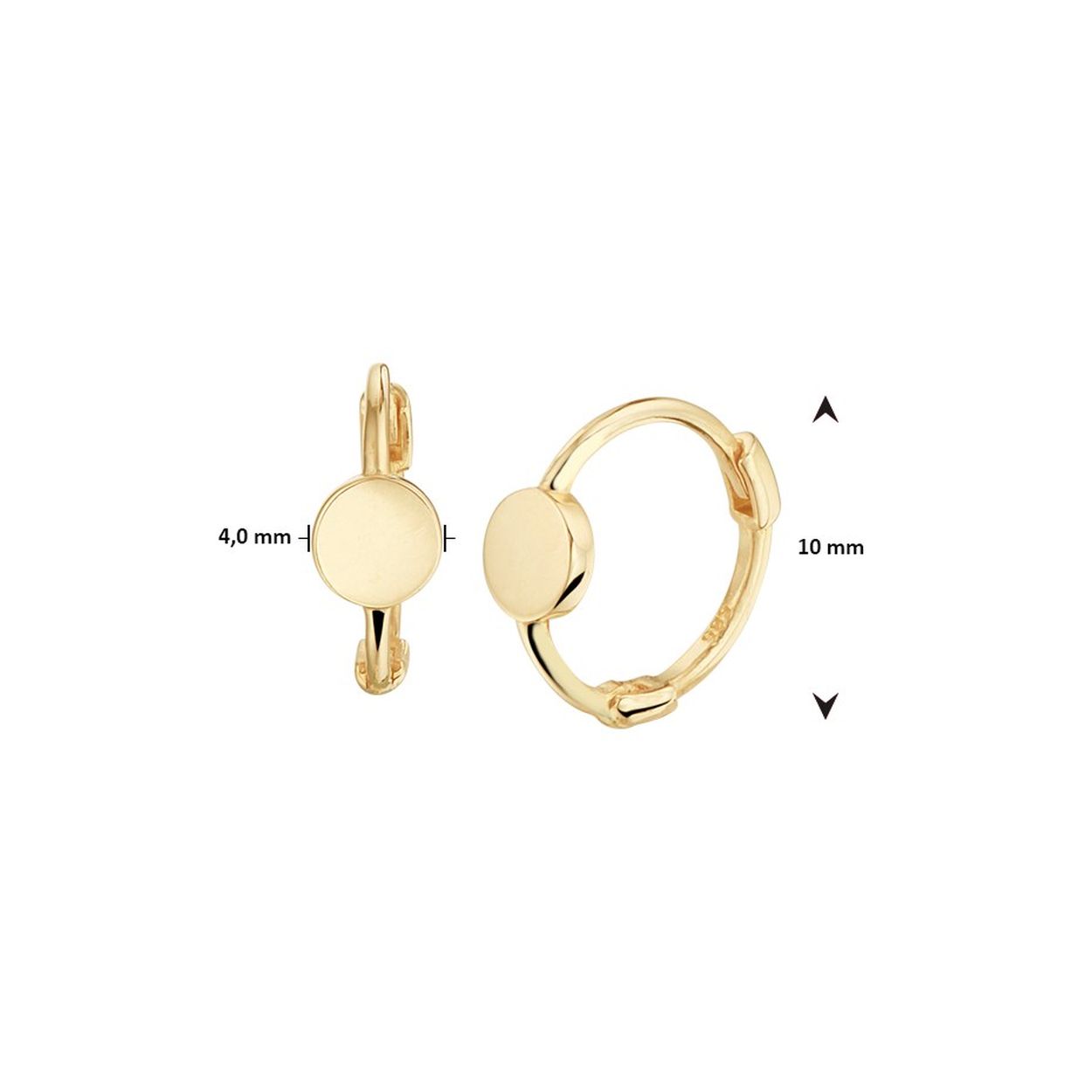 14k Geelgouden klapoorringen met een diameter van 10mm. Het rondje heeft een diameter van 4mm.