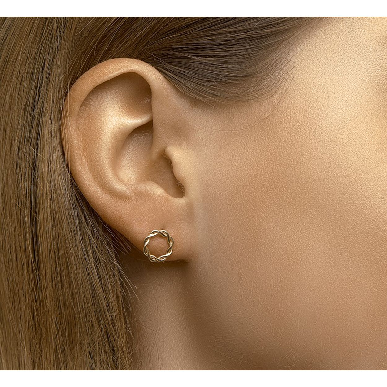 14k Geelgouden rond gevlochten oorknoppen. De oorknoppen hebben een diameter van 9mm.