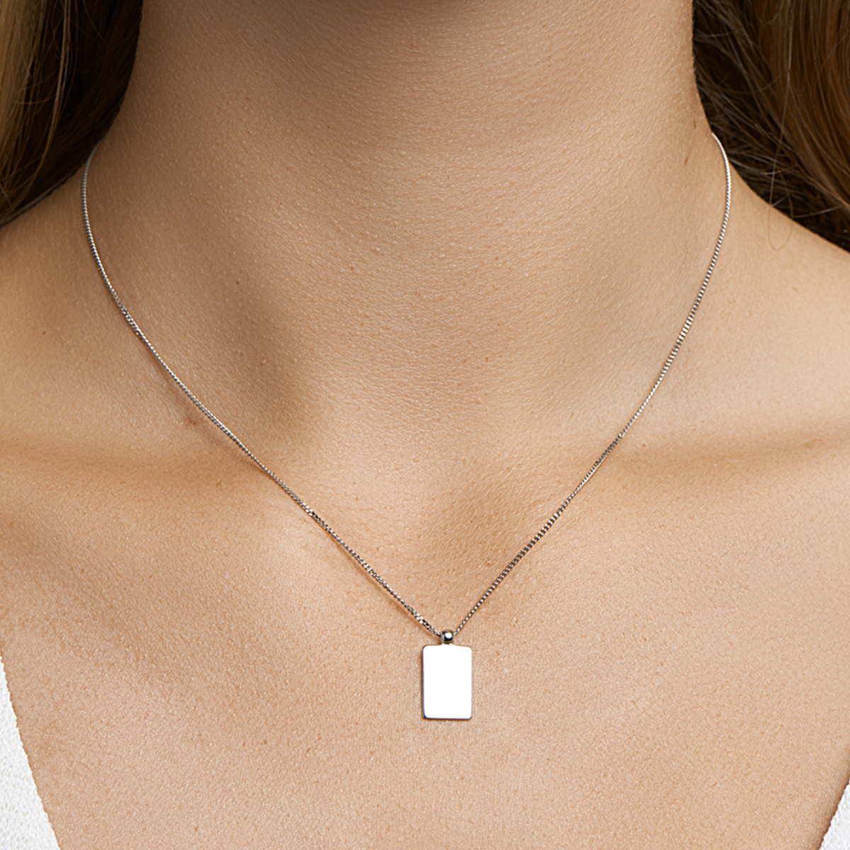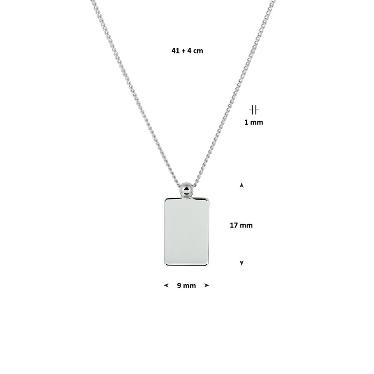 Elegant collier van 925 sterling zilver, uitgevoerd met een subtiele gourmet schakel van 1,0 mm breed. Het collier is voorzien van een graveerplaat van 17 x 9 mm met een dikte van 0,8 mm – ideaal om te personaliseren met een naam, datum of initialen. Dankzij de lengte van 40 cm en de extensie van 5 cm is het collier eenvoudig op maat te dragen. Een tijdloos en persoonlijk sieraad dat ook zeer geschikt is als cadeau.