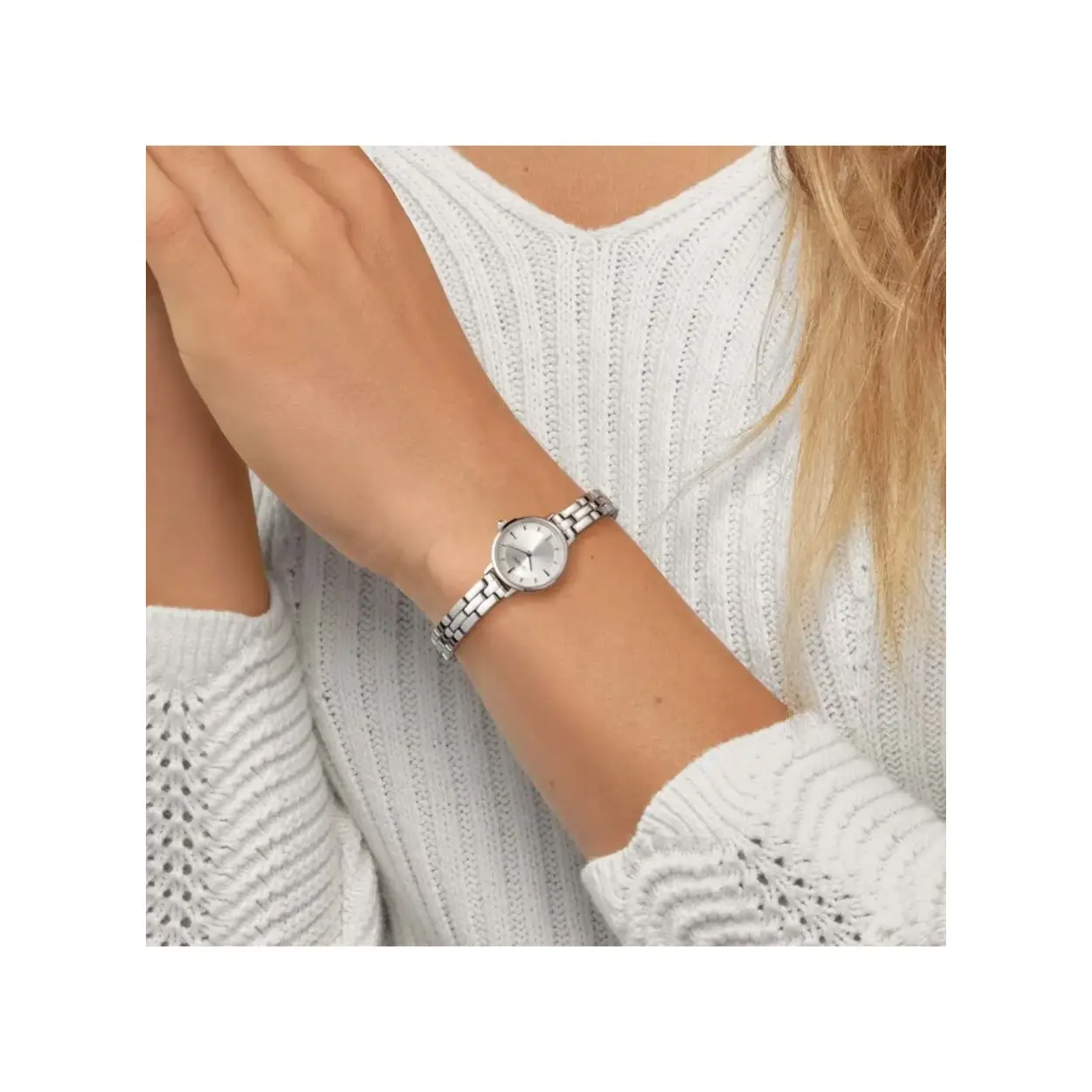 Dit unieke Olympic horloge is een dameshorloge met een chique uitstraling. Het horloge heeft een ronde stalen kast met een zilverkleurige sunray wijzerplaat met fijne streepjes. Aan de kast zit een fijne stalen schakelband met druksluiting. Het horloge heeft een mineraalglas, een doorsnee van 22mm en is 3ATM.