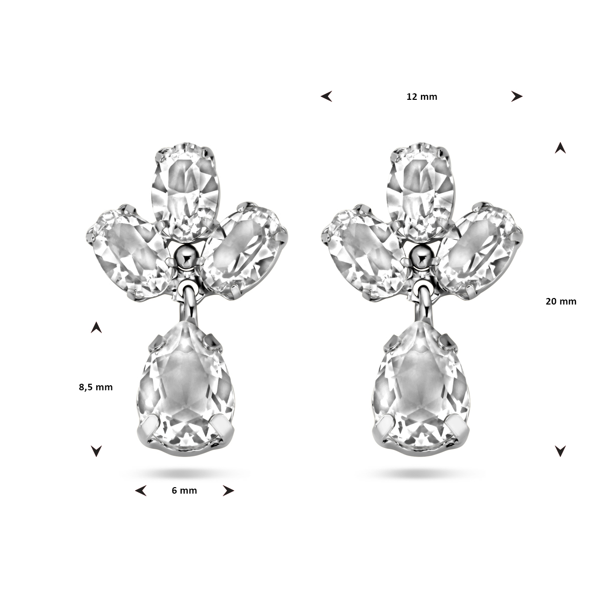 Stijlvolle oorhangers van 925 sterling zilver, verfijnd uitgevoerd met schitterende Swarovski stenen die het licht prachtig opvangen. Met een totale hoogte van 20 mm zijn deze oorbellen subtiel maar toch opvallend, perfect om elke outfit een elegante en luxe touch te geven.
