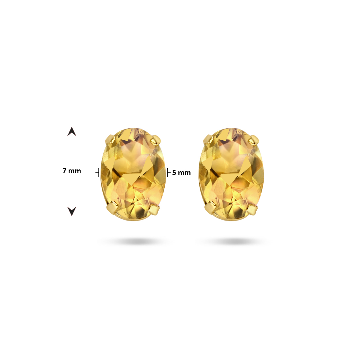 14k Geelgouden citrien oorknoppen met een afmeting van 7x5mm. De citrien stenen hebben een totaal steengewicht van 1.44ct (2x 0.72ct).