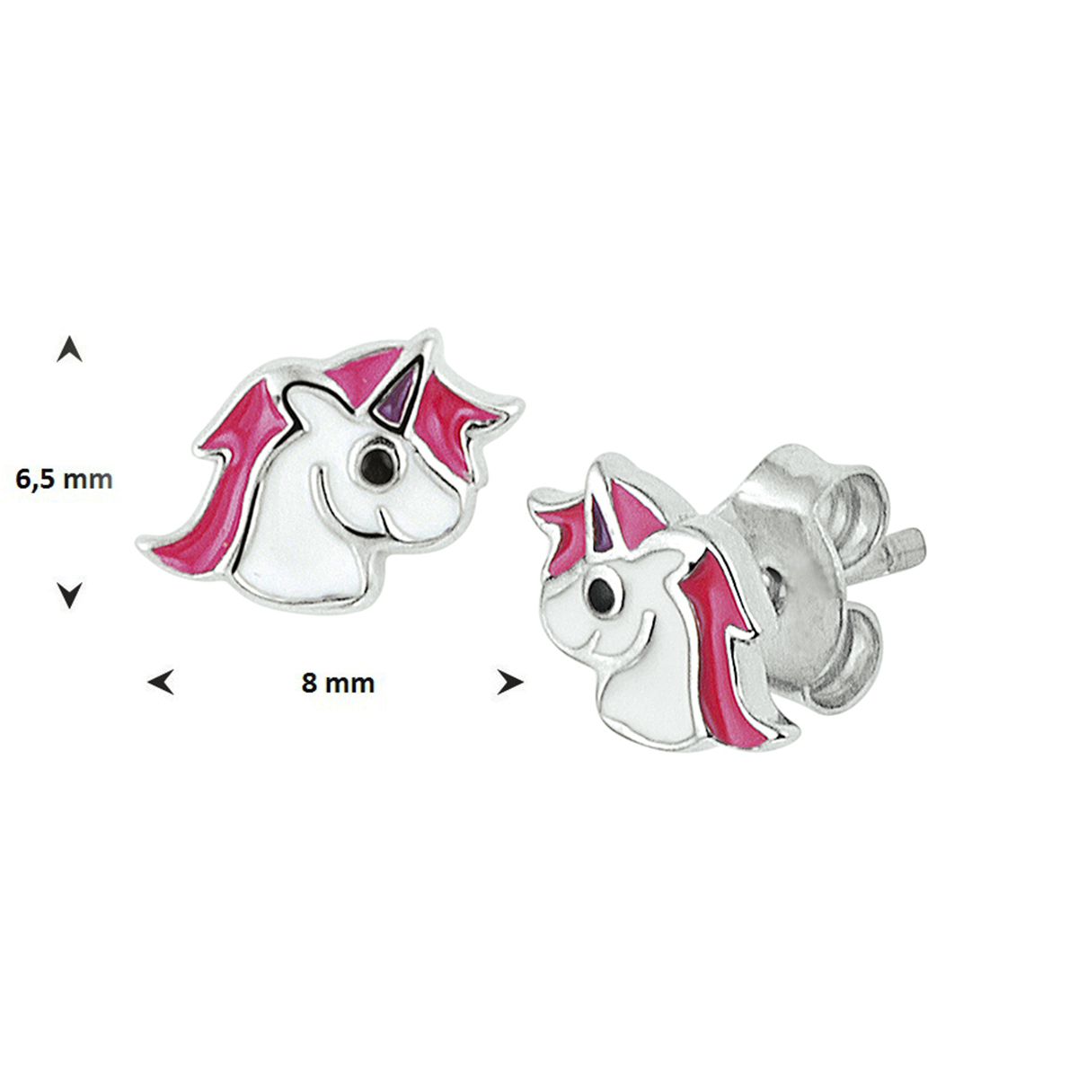 De Oorknoppen Eenhoornzijn elegante zilverkleurige stekertjes met eenhoorndesign, gemaakt van rodiumplated materiaal met een glanzende afwerking. Ze wegen 0,79 gram en hebben een afmeting van 6,5 x 8 mm. Voorzien van een poussettesluiting zijn ze perfect voor zowel dagelijks gebruik als speciale gelegenheden. Draag ze met je favoriete zilveren sieraden voor een samenhangende look.