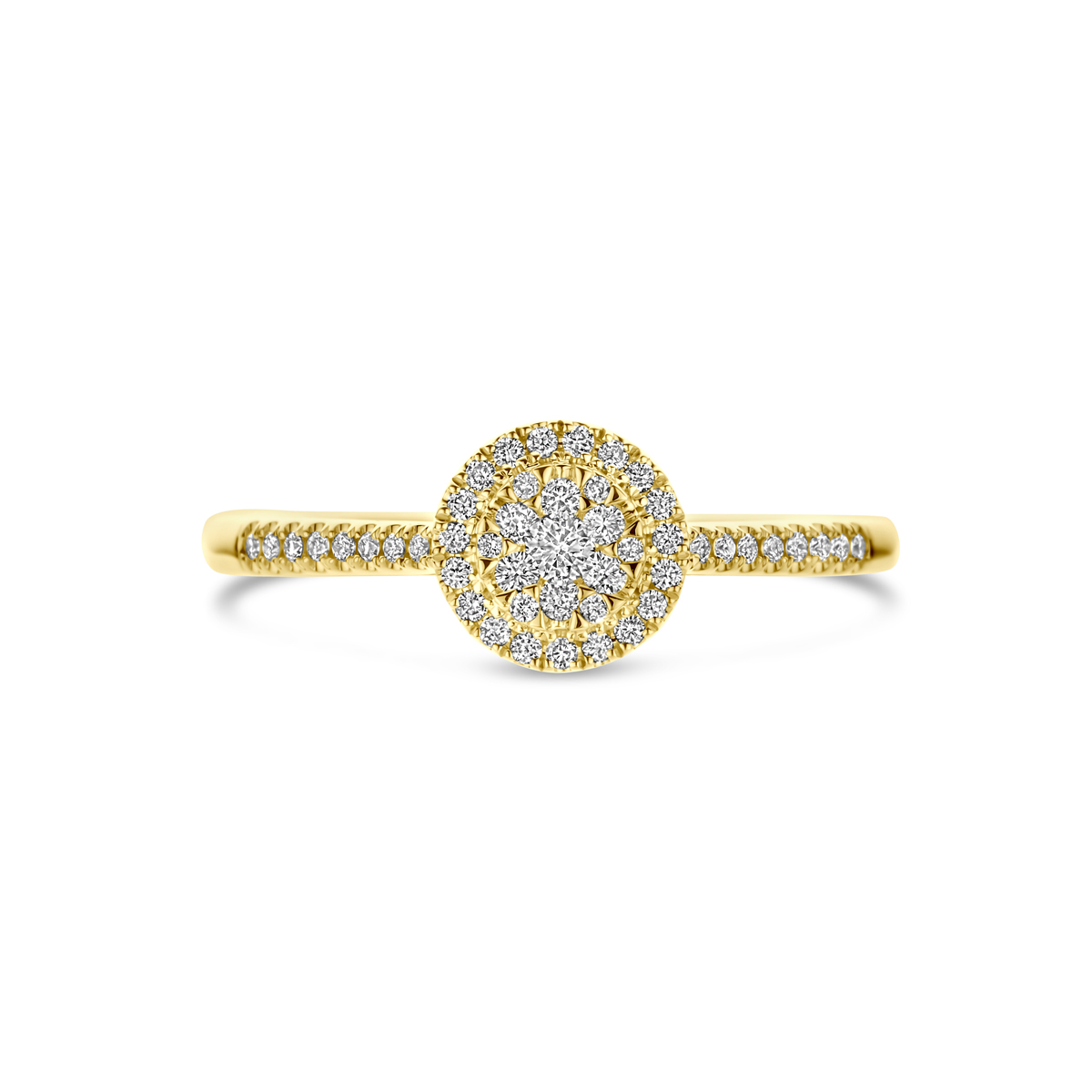 Deze 14k geelgouden ring is verfraaid met een sprankelende diamant, waardoor hij een tijdloos en elegant sieraad is. De ring heeft een klassiek ontwerp dat perfect is voor dagelijks gebruik of speciale gelegenheden. Draag deze ring alleen om de aandacht te vestigen op de glinsterende steen, of stapel hem met andere ringen voor een trendy look. Gemaakt om te schitteren!