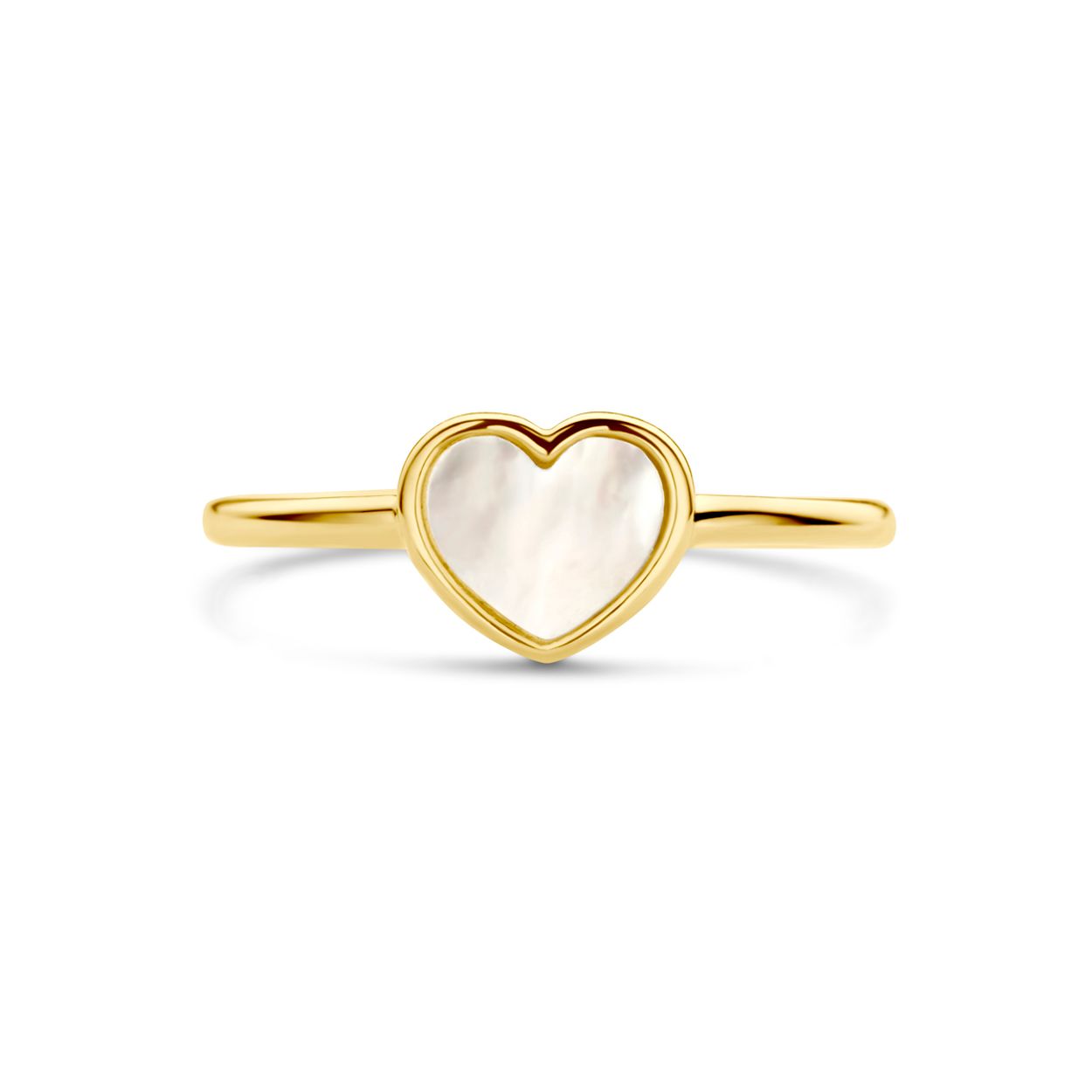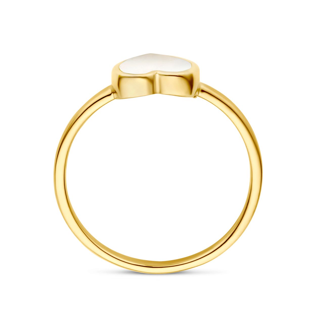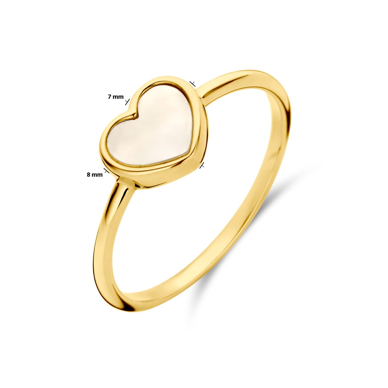 14k Geelgouden ring met een hart van 7x8mm. Uitgevoerd met parelmoer.