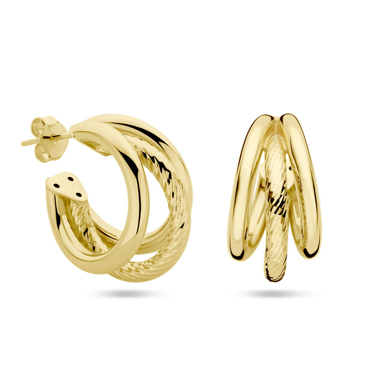 Geelgoud op 925 zilveren stekeroorringen met een afmeting van 21x13.3mm. Geen garantie op plating.