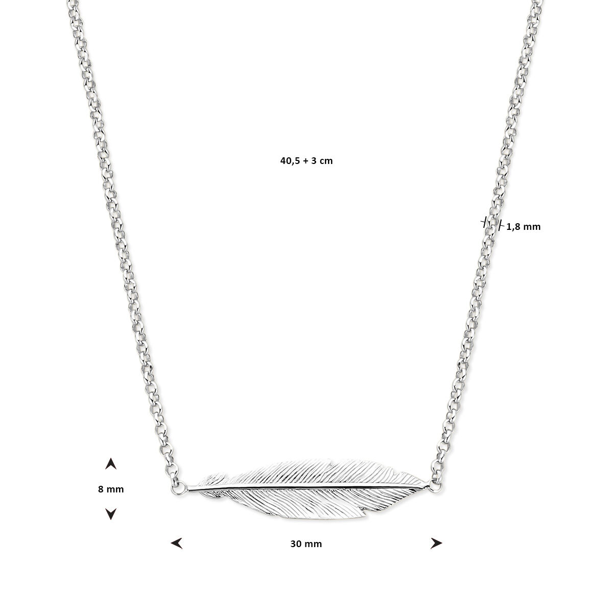 Zilveren collier met een veer. Het collier is onderdeel van een set en de lengte bedraagt 40.5cm met 3cm extensie.