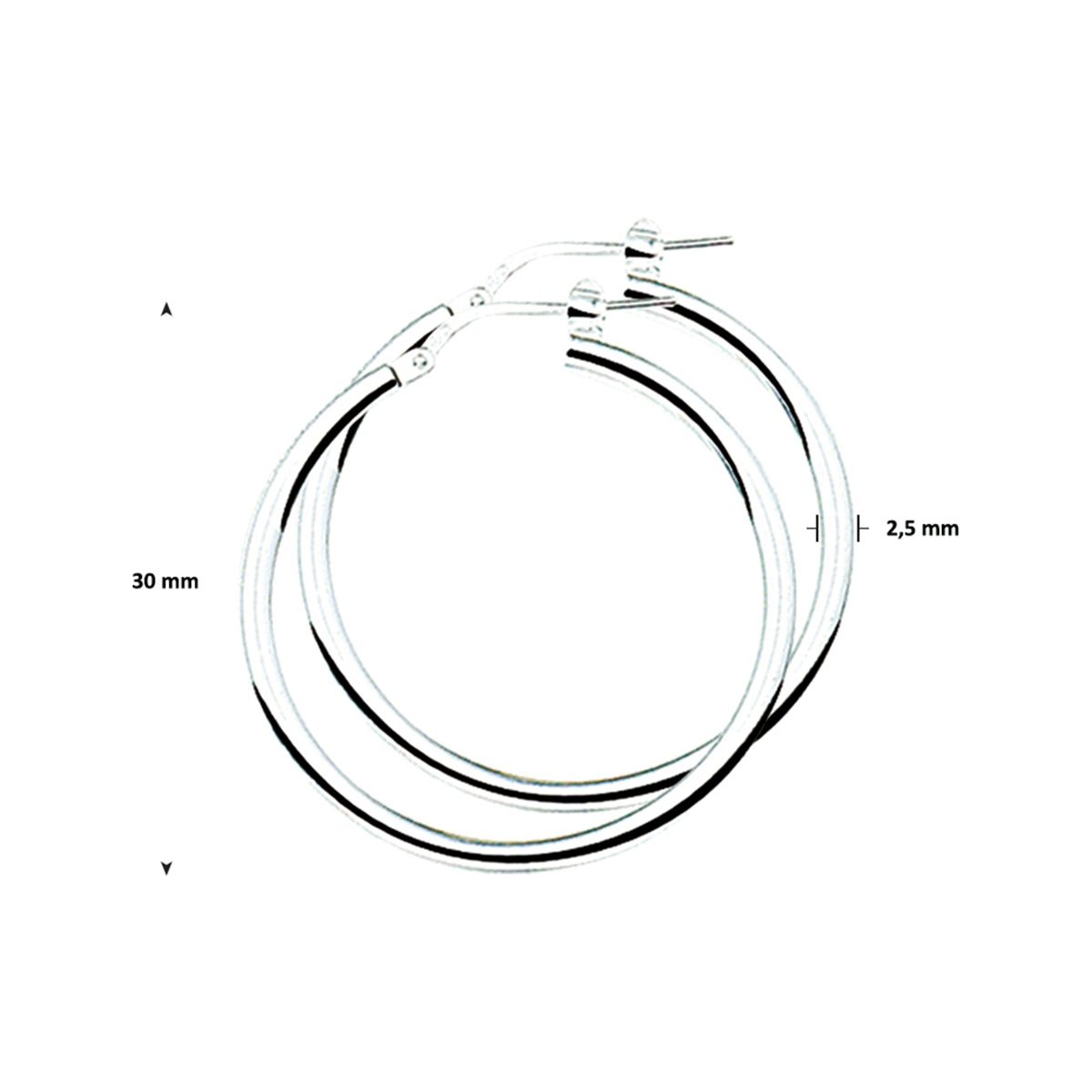 De zilveren oorsieraden hebben een ronde vorm met een diameter van 30 mm. Ze zijn 2,5 mm dik en wegen 4,22 gram. De creolen hebben een glanzende afwerking. Combineer met zowel casual als formele outfits voor een verfijnde uitstraling. Perfect voor dagelijks gebruik en speciale gelegenheden.
