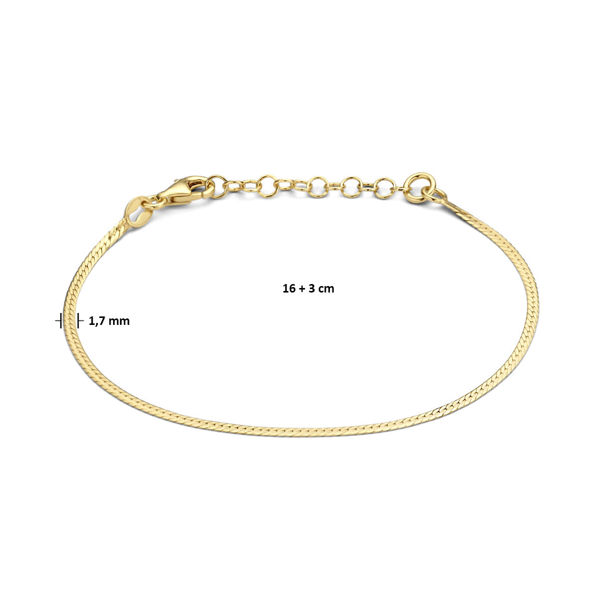 Deze delicate armband is gemaakt van verguld 925 zilver, wat betekent dat het massieve zilver is afgewerkt met een laagje goud. Met een breedte van slechts 1,7 mm is het een subtiel en verfijnd sieraad.