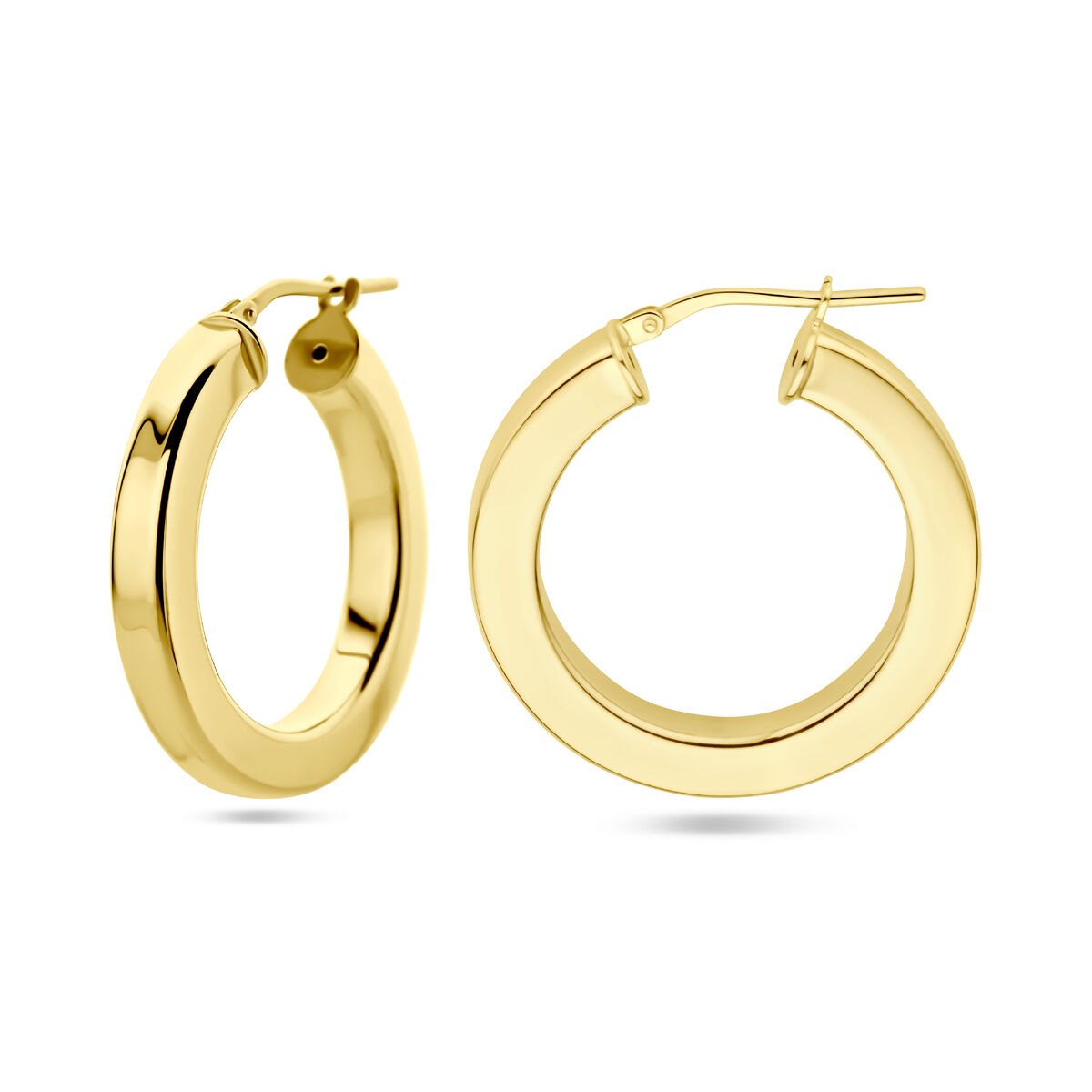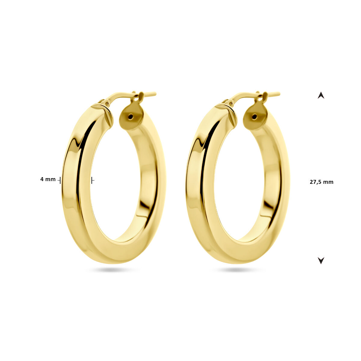 ZILVER VERGULD (GEEL) OORSIERADEN  Met een diameter van 27,5 mm en een gewicht van 5,9 gram zijn dit vlakke creoolse oorbellen die een elegante aanvulling zijn op elke outfit. Perfect om te dragen bij zowel casual als formele gelegenheden voor een verfijnde uitstraling.