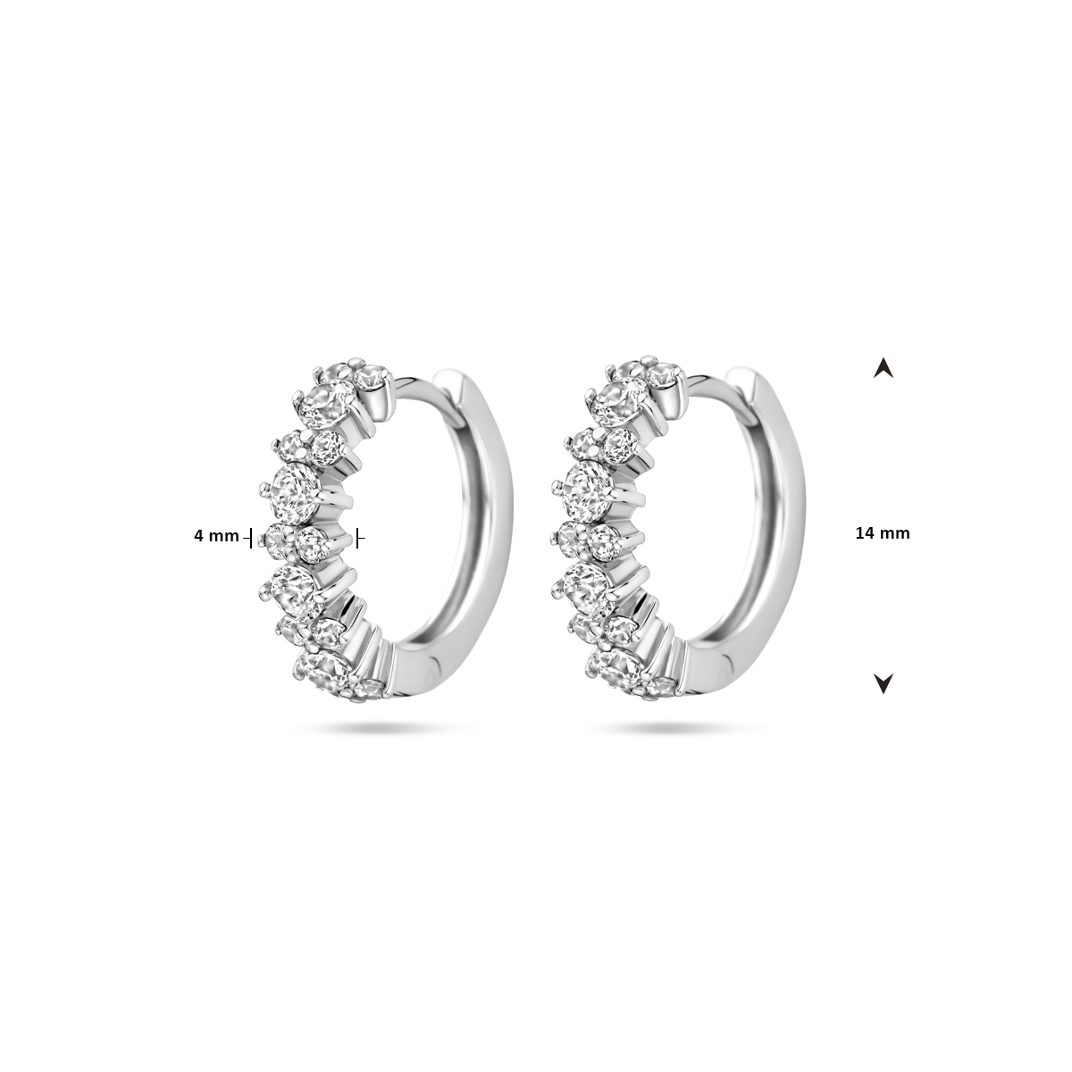 Elegante klapoorringen van 925 sterling zilver, verfijnd bezet met fonkelende zirkonia. Met hun afmeting van 14 x 4 mm hebben deze oorbellen een chique uitstraling die zowel geschikt is voor dagelijks gebruik als voor feestelijke gelegenheden. De praktische klapsluiting zorgt voor comfortabel en veilig draaggemak.