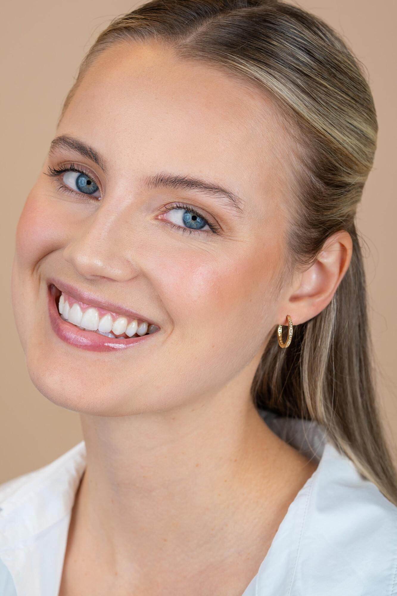 ZINZI Gold 14 krt gouden oorringen, bezet met witte zirconia's met luxe klapsluiting 17mm x 2mm vierkante buis.