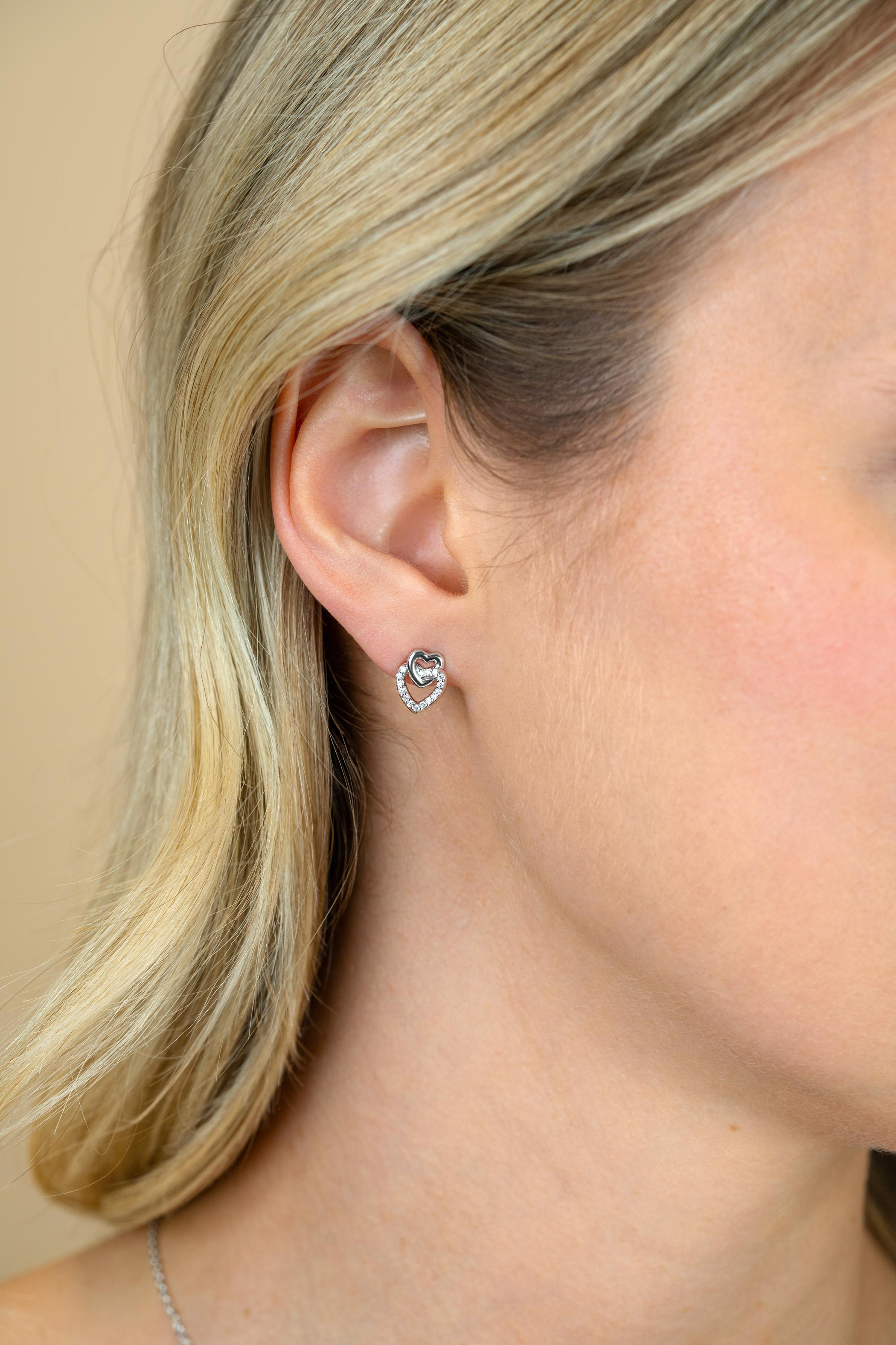 ZINZI zilveren oorknoppen 10mm, waarbij twee open harten mooi met elkaar verbonden zijn: een glad open hartje en een groter open hartje bezet met witte zirconia's. Vervaardigd van eerste gehalte zilver (925) en met extra rodiumlaag voor een langdurige glans.