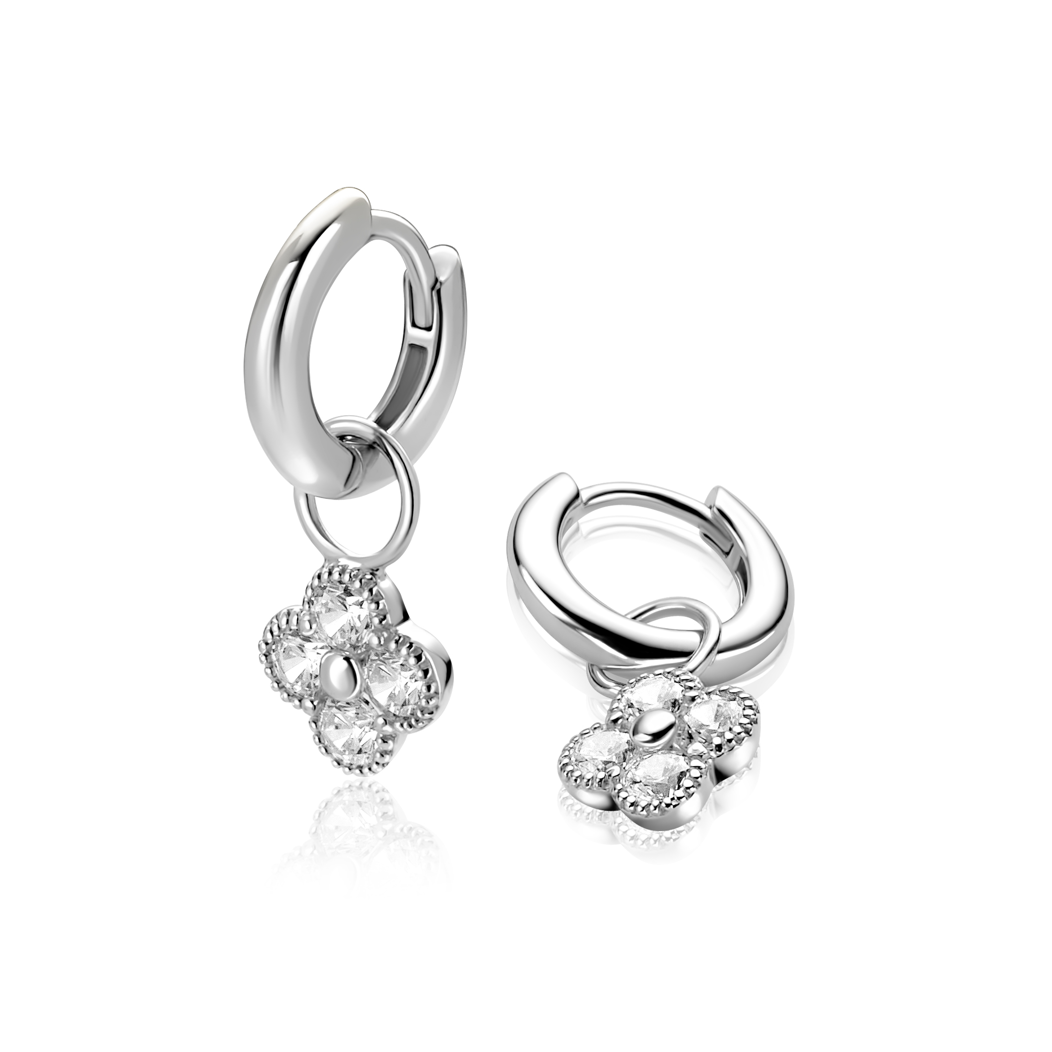 ZINZI 8mm zilveren oorbedels klavertje (zonder oorringen)