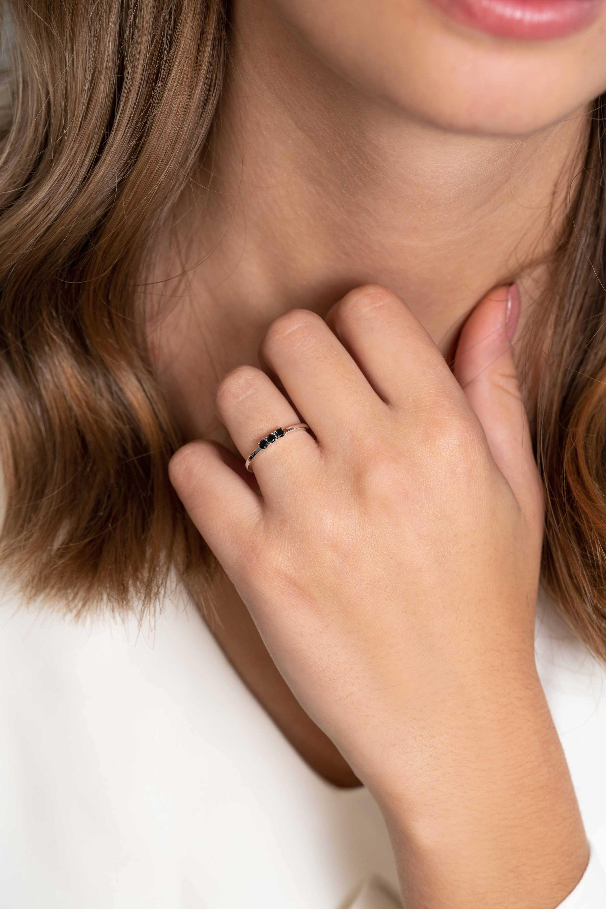 ZINZI zilveren aanschuifring met drie zwarte zirconia's sierlijk gezet in een chaton zetting. Dit tijdloze model is verkrijgbaar in verschillende kleuren. Ideaal om af te wisselen of mee te combineren met je andere Zinzi ringen. Vervaardigd van eerste gehalte zilver (925) en voorzien van een extra rodiumlaag voor een langdurige glans.