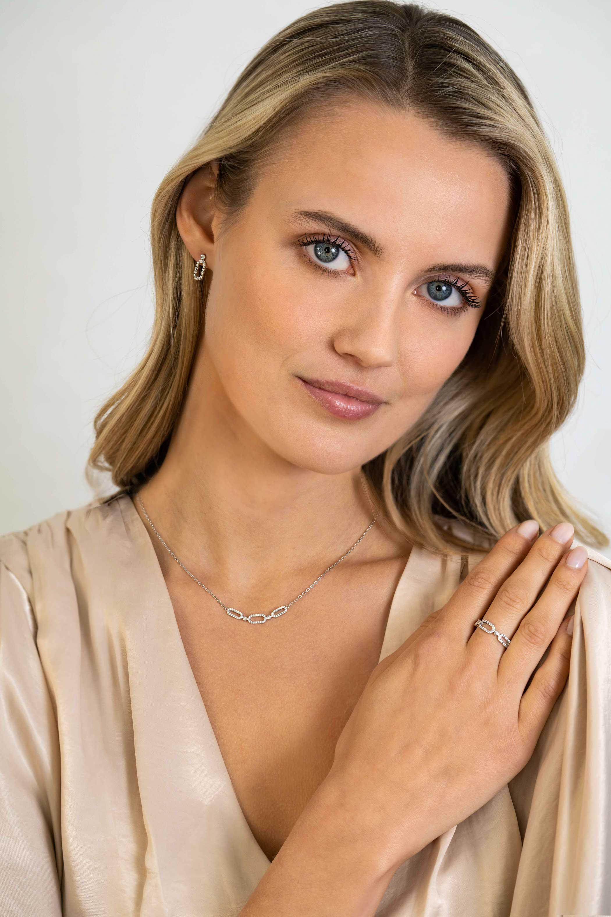ZINZI zilveren ring met drie trendy ovale schakels, schitterend bezet met witte zirconia's. De schakels zijn sierlijk verbonden door twee ronde zettingen, bezet met witte zirconia's. De ring is 5mm breed. Vervaardigd van eerste gehalte zilver (925) en voorzien van een extra rodiumlaag voor een langdurige glans.
