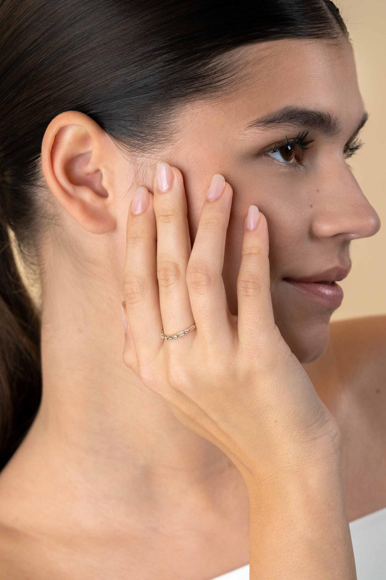 ZINZI Gold 14 karaat gouden ring (1,7mm breed) met afwisselend bezet met baquette geslepen zirconia's en ronde witte zirconia's. Gemakkelijk te combineren met andere ZINZI Gold ringen. Vervaardigd van geheel 14 karaat goud (585).